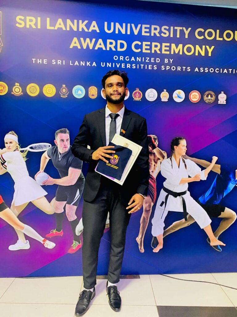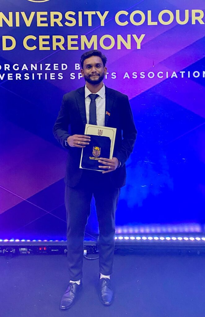 Mr. V. Kerishanthan, a student from the 34th batch of the Faculty of Agriculture, University of Jaffna, was awarded the prestigious Sri Lanka University Colours by SLUSA on 30th May 2025 for his outstanding performance at the 2024 Inter-University Games.