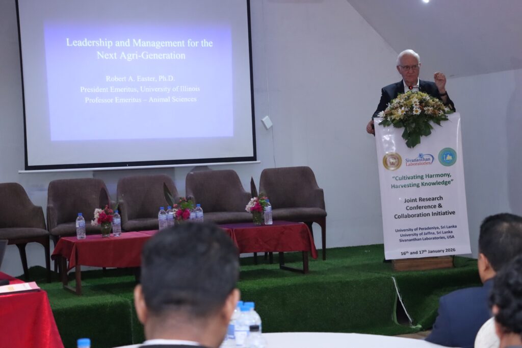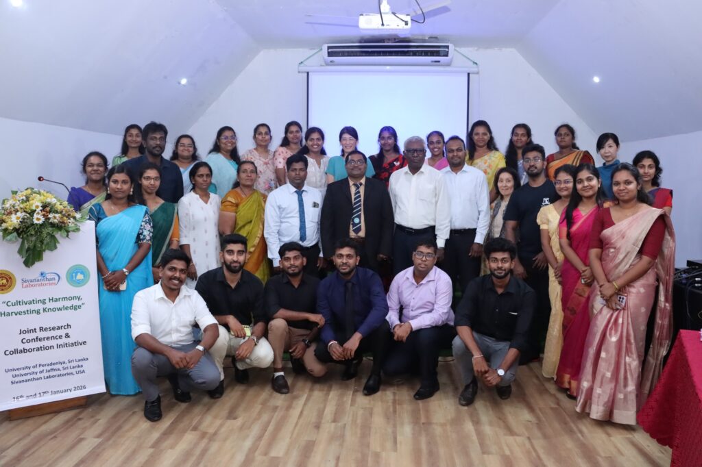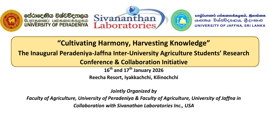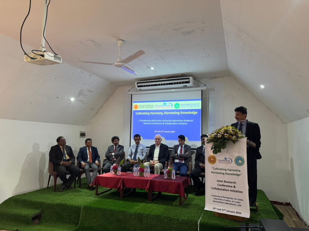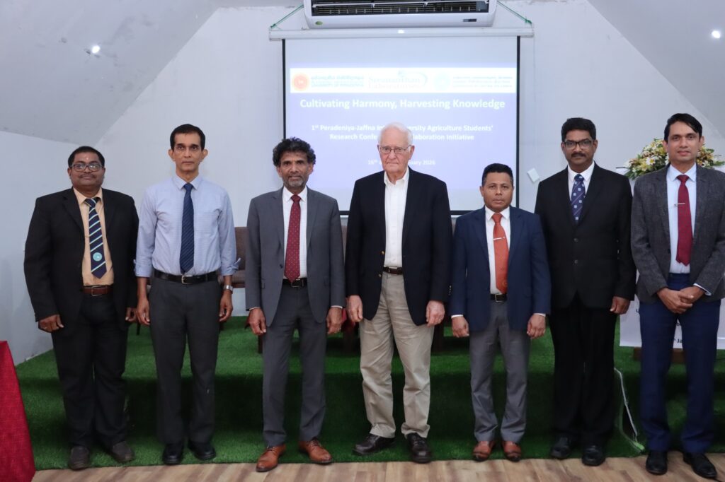 The Faculty of Agriculture, University of Peradeniya, and the Faculty of Agriculture, University of Jaffna, in collaboration with Sivanathan Laboratories Inc., USA, were organized a Conference and Collaboration Initiative under the theme “Cultivating Harmony, Harvesting Knowledge.” The event, titled The Inaugural of Peradeniya–Jaffna Inter-University Agriculture Students’ Research Conference, which held on 16th and 17th January 2026 at Reecha Resort, Iyakkachchi, Kilinochchi.